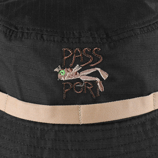 Pass~Port Frog Lure Anglers Bucket Hat (Black)